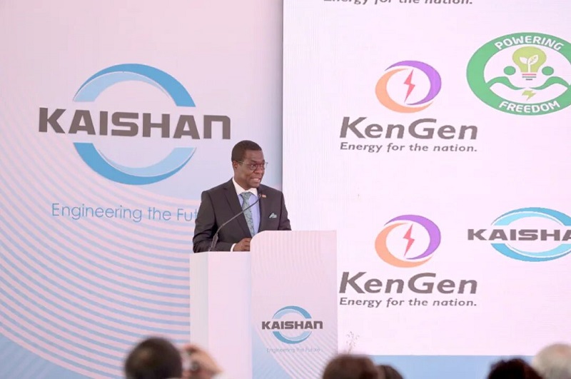 湯炎博士也在儀式上講話。他強調指出:我們已經為肯尼亞綠色工業化完成了兩個地熱電廠,開山Olkaria 地熱電廠和綠色化肥廠是開山在肯尼亞的下一個里程碑,是開山在清潔能源發展征程上又一個新的篇章。我們要使用肯尼亞能源公司的地熱蒸汽生產165 MW清潔電能,并用這一清潔電能制氫、生產綠氨,最終生產出超過48萬噸的綠色化肥。特別需要特別指出的是,開山Olkaria 地熱電廠是世界上第一座零排放的地熱電廠。地熱蒸汽中的不凝性氣體將被完全回收生產CO2,并送往綠色化肥廠作為生產尿素的原料。我們在創造歷史,零排放地熱發電廠的歷史,綠色化肥生產的歷史,非洲綠色工業化的歷史,并將激勵全球綠色能源和綠色工業化的發展。